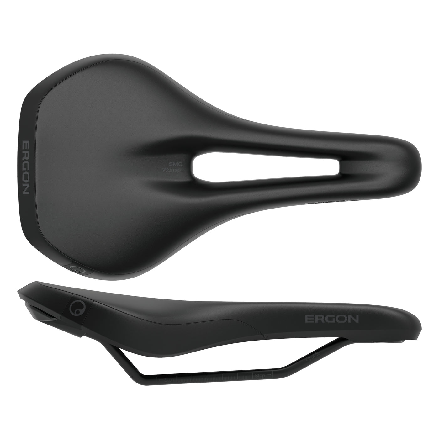 Ergon SMC Saddle - Stealth Womens Medium/Large. Ergon SMC mountain bike saddle. Further refined for even more comfort the orthopedic foam is thicker softer and creates a large contact area. Features a flat seat for dynamic sitting in different positions without tilting effects.