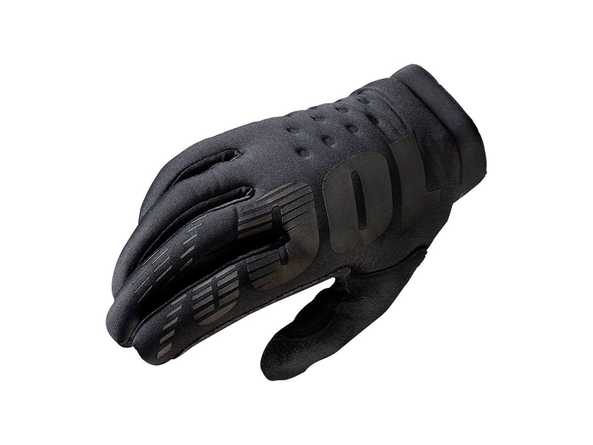 100% Brisker Gloves - Black Full Finger Mens X-Large. Mother Nature has met her match with the low profile Brisker glove engineered to keep you going fast in cooler weather. Get the perfect amount of insulation to block out damp cool temperatures while maintaining exceptional dexterity and control of your bike. These work well for those cold trail exploring or maintenance days.